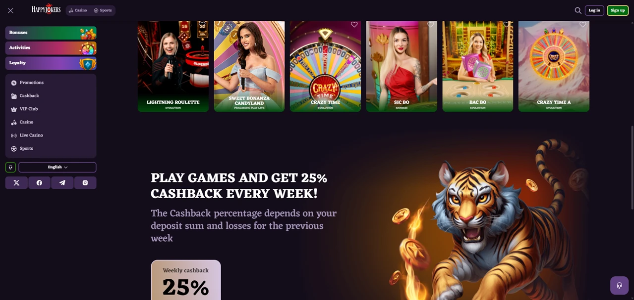 The casino launched in 2025, runs on an Anjouan licence, and goes heavy on the circus theme. Over 5,000 games from providers like Evolution, Pragmatic Play, and NetEnt. Welcome bonus reaches €675 plus 250 free spins; the VIP programme offers up to 25% weekly cashback across ten levels.