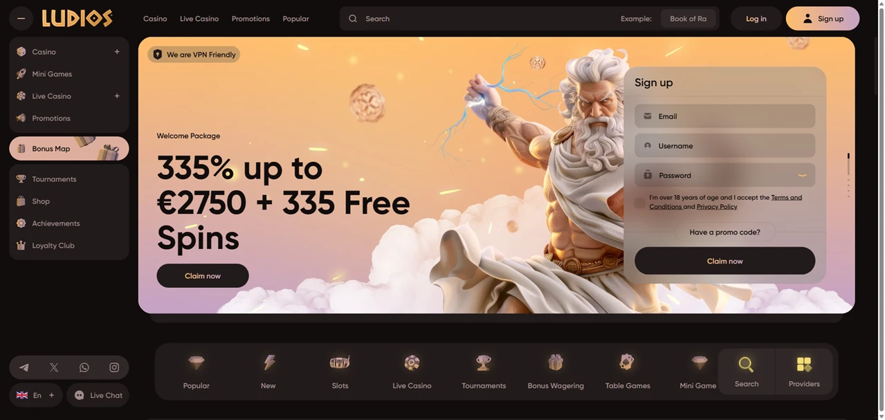 Being launched in 2025, at the Ludios Casino app, depending on your location, 71 game studios with more than 2.743 online casino games, being one of the highest game libraries in the market, are at your disposal. The license issued by the Curaçao eGaming Authority guarantees that Ludios Casino meets the highest safety standards. For further information regarding the usability and download procedure, keep on reading this Ludios Casino app article.