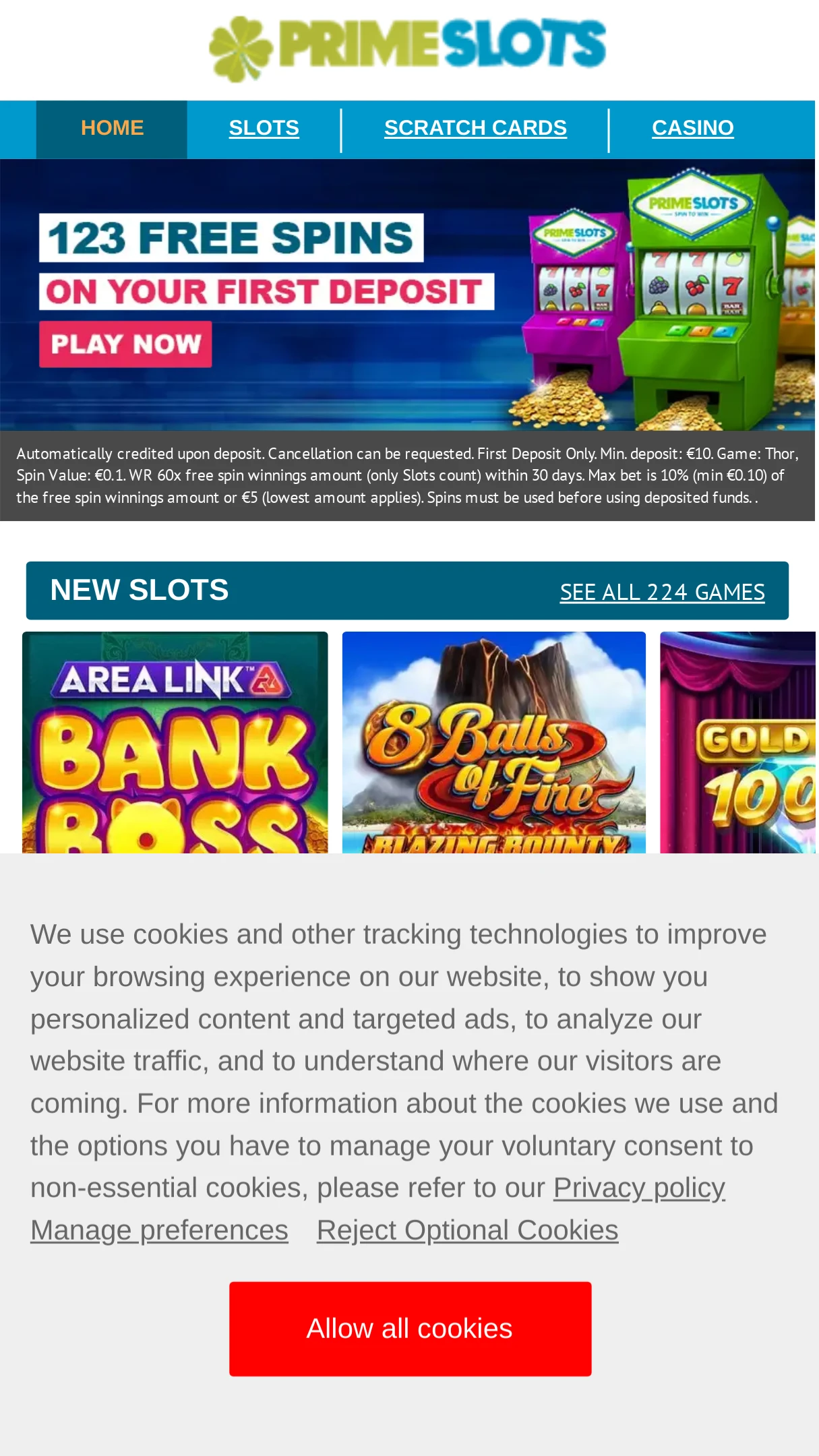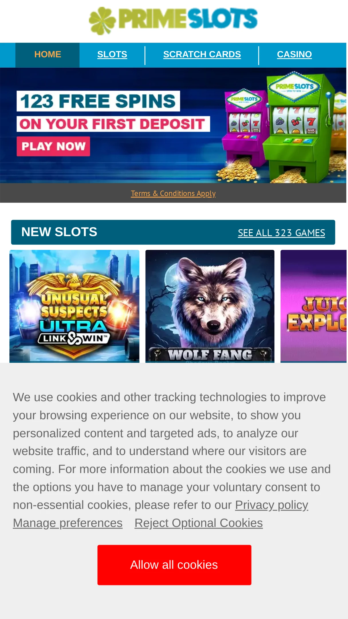 Games on Prime Slots are provided by a number of different software providers, including Amaya and NetEnt, but the majority are powered by NeoGames, the global leader in online scratch cards and lotteries.
