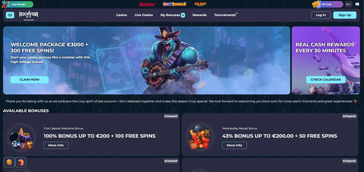 Since the foundation in 2025 the RockstarWin Casino app provides over 3.114 online casino games, being one of the largest game libraries out there – the exact number depends on your location – from 65 software providers. The Curaçao eGaming Authority monitors safety as well as fairness of RockstarWin Casino. Some important information about the RockstarWin Casino app is presented in our article.
