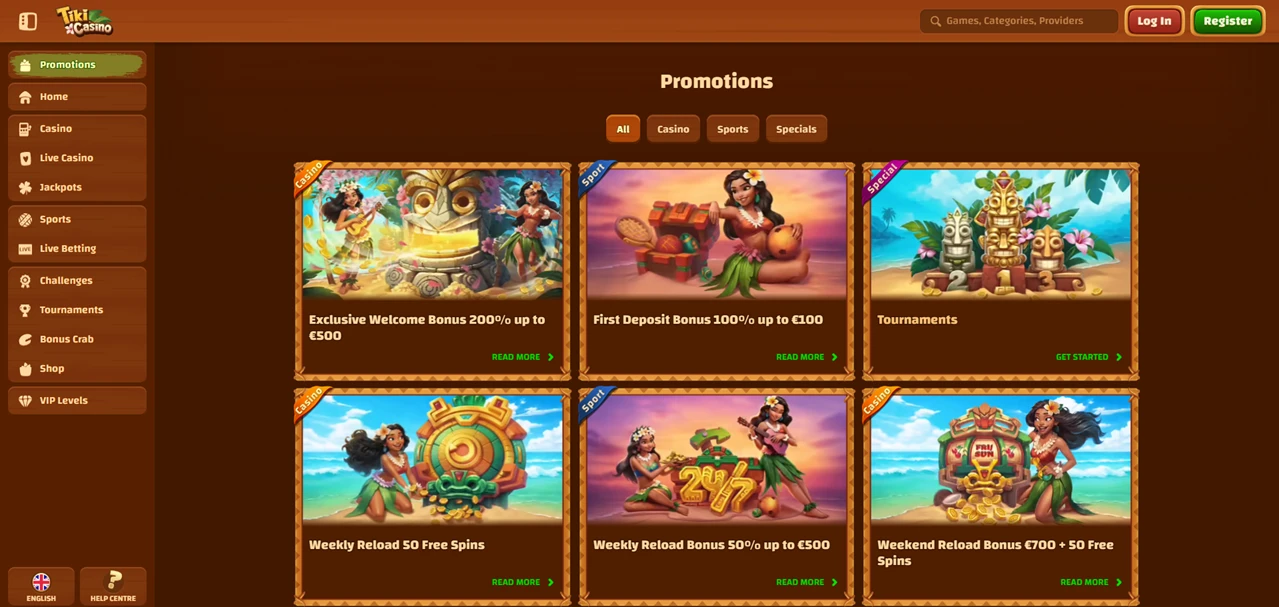 Aside from Playtech, Play’n GO or Elk Studios, there are more than 90 other software studios with a large choice of slots you can try. Not only video slots, but also live casino games (for example from Pragmatic Play, Ezugi or Betgames) can be played using the mobile app. Moreover, you can also place sports bets at TikiCasino. Native apps are by the way more common for sports betting as they demand no coordination of various gaming studios and therefore less updates. Nevertheless, in this casino just place sports bets using the web app.