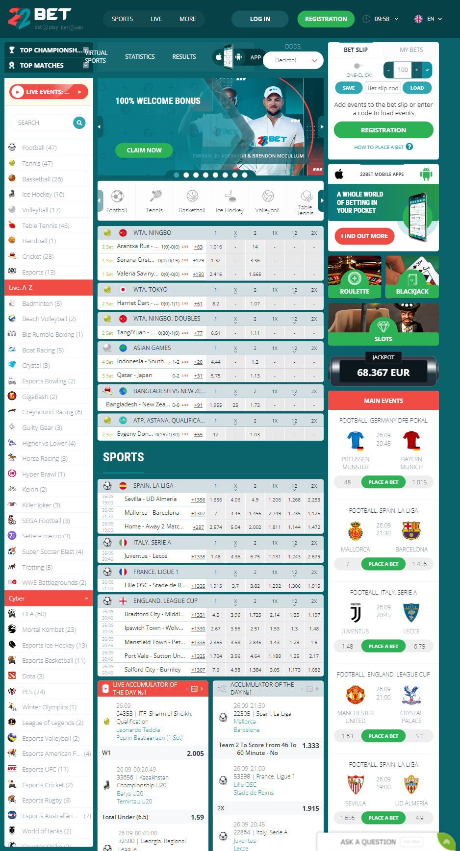 One unusual mechanic partially offsets the restrictive cap: bets in the “22 Games” section count double towards wagering requirements. A €5 bet registers as €10 of progress.