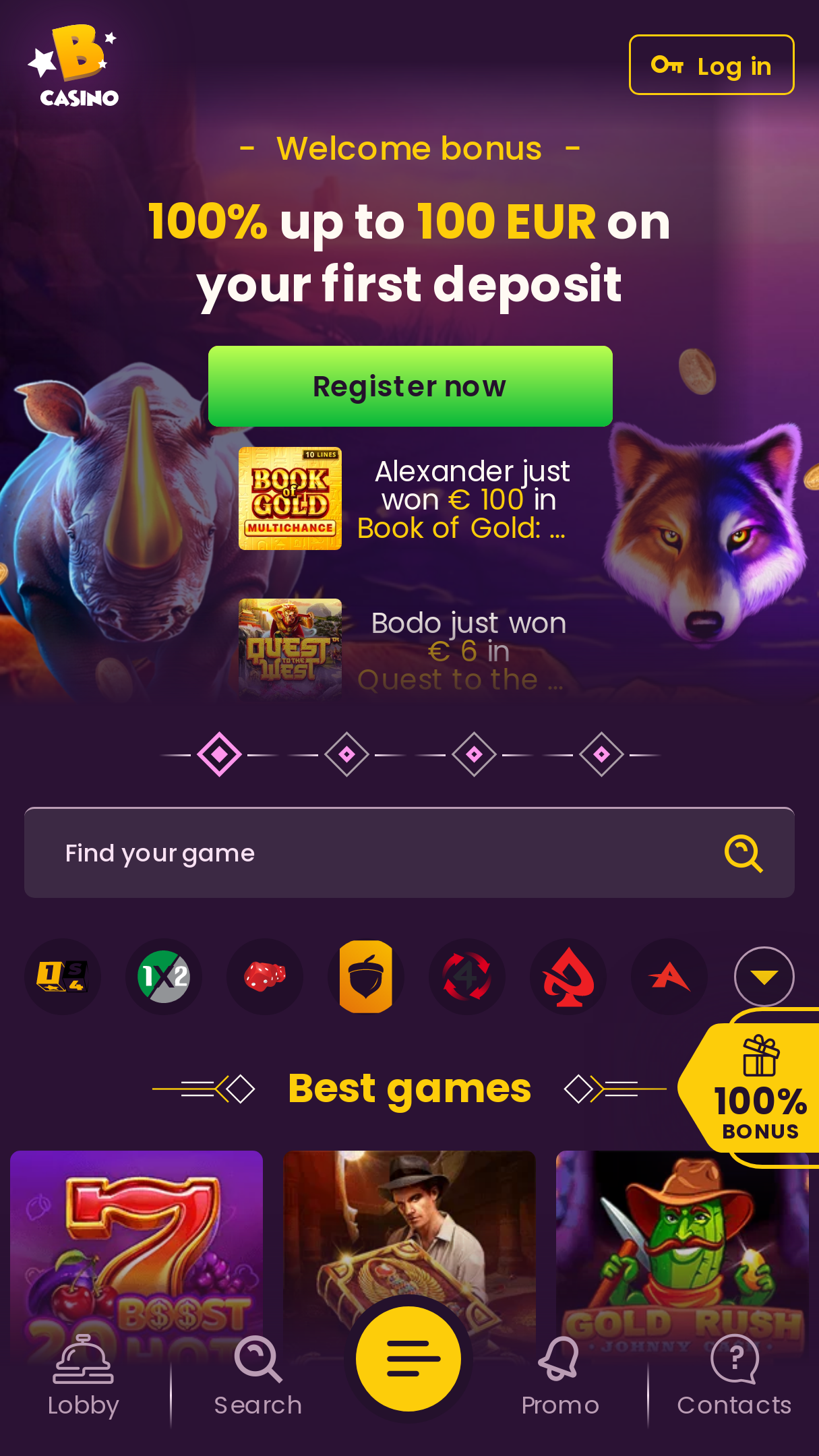 | 💰 Up to 100%* | €300 | 🎰 50 FS (instant) |