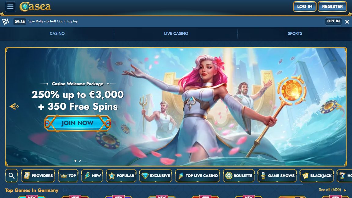 Casea does invest in atmosphere. The Atlantis-inspired sea theme gives the platform a distinctive identity — titans, deep-sea mysteries, and a cohesive aesthetic that most casino launches don’t bother with.