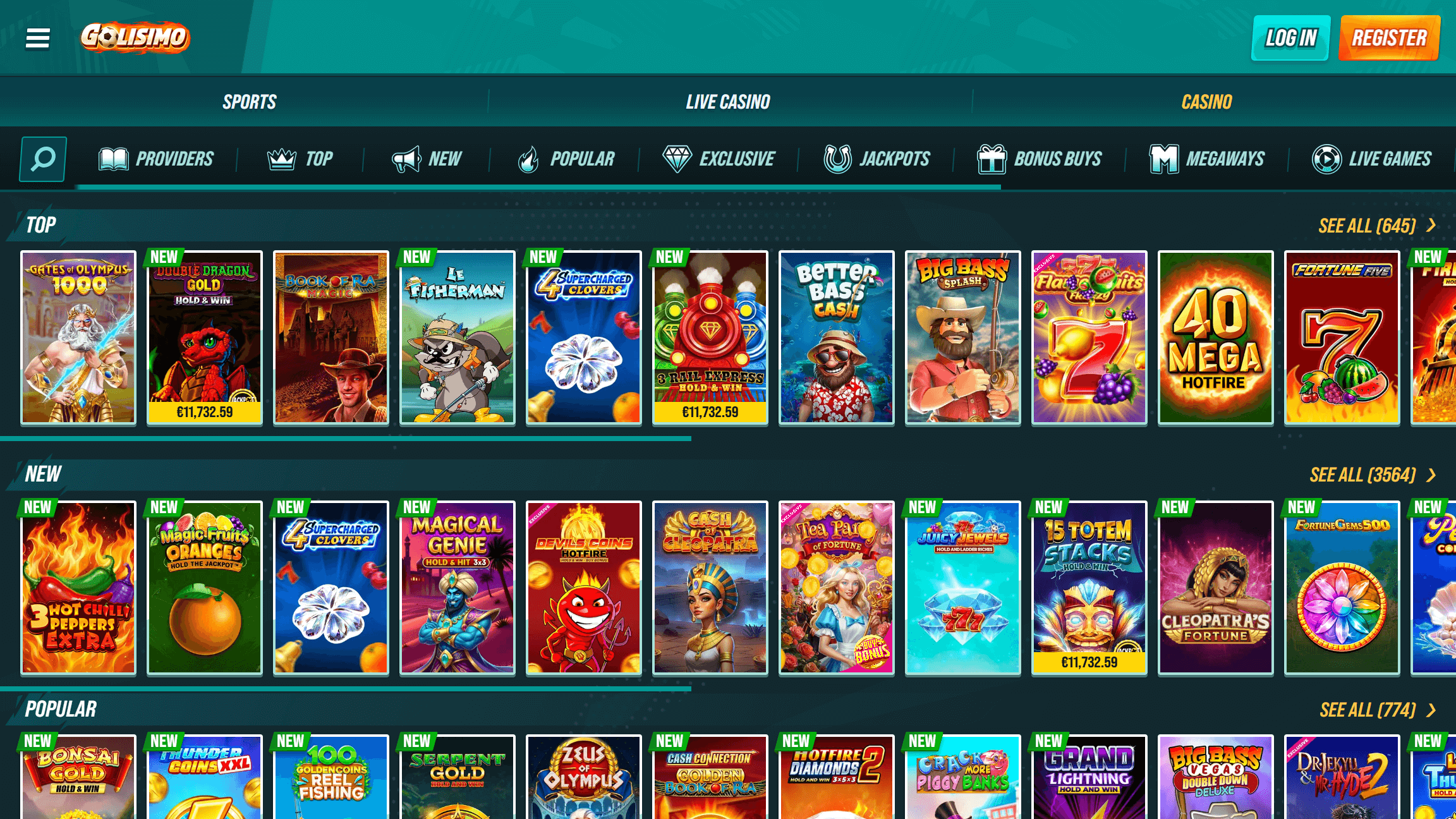 Being a player at Golisimo, you have the option to play over 2.009 casino games.
